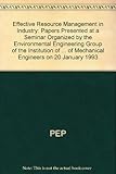 Effective Resource Management in Industry: Papers Presented at a Seminar Organized by the Environmental Engineering Group of the Institution of ... of By Rar